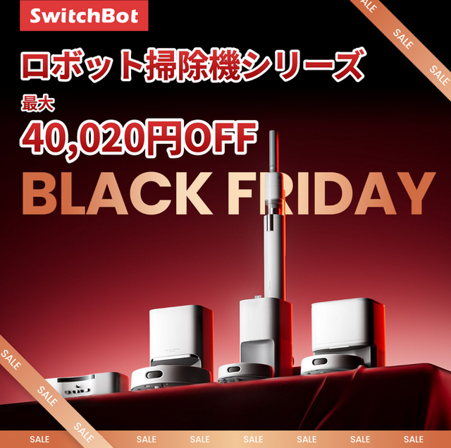 IoT・スマートホーム事業を手掛ける「IoTデバイスNo.1ブランド」(※2022年11月 家電Biz調べ)のSWITCHBOT株式会社(本社 : 東京都渋谷区)は、2024年11月27日(水)~12月6日(金)の期間中、Amazon公式店および公式サイトにてブラックフライデーのセールを実施。また、楽天直営店でも2024年12月4日(水)~11日(水)に楽天スーパーセールを開催いたします。