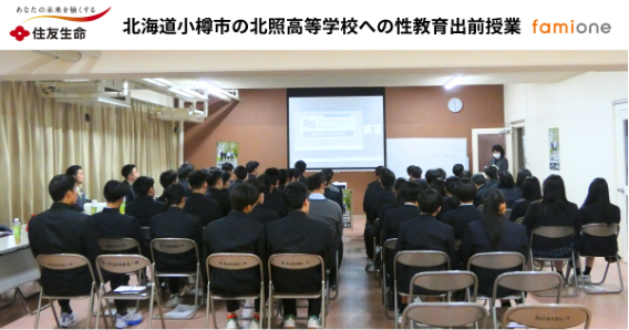 「子どもを願うすべての人によりそい 幸せな人生を歩める社会をつくる」をビジョンに掲げ、法人の従業員向け福利厚生や自治体の住民向け支援を行うヘルスケアサポートサービス「ファミワン」 https://famione.com/benefit/ などを展開する株式会社ファミワン(本社:東京都渋谷区、代表取締役:石川勇介)は、2024年11月に住友生命保険相互会社(本社:大阪府大阪市、取締役 代表執行役社長:高田 幸徳)との協業に関するプロジェクトの一環として、性教育に関する出前授業を、北海道小樽市の北照高等学校でオンライン開催しました。