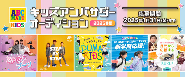 ハッシュタグ:「#abcキッズオーディション2025春夏」「#abcmart」
