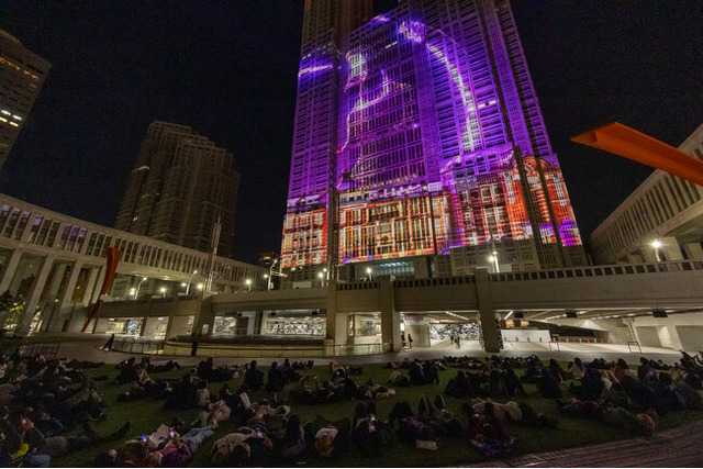 東京都では、夜間の観光振興の活性化に向けて、東京の夜を彩る新たな観光資源を作るため、代表的なランドマークである都庁第一本庁舎をキャンバスに光と音で多彩なアートを表現するプロジェクションマッピングを通年で上映しており、これまでに約43万人※の方にご来場いただいております。