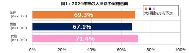 ・2024年末の大掃除は69.3%が実施予定。若年層の方は意向が高い結果に!
