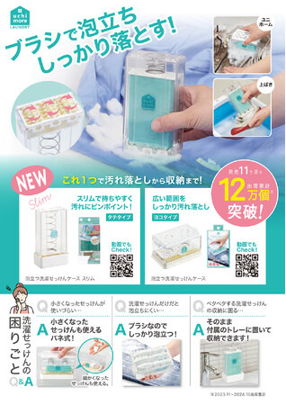 発売11カ月で出荷累計12万個突破した「泡立つ洗濯せっけんケース」に、汚れをピンポイントで落とすスリムバージョンが登場!