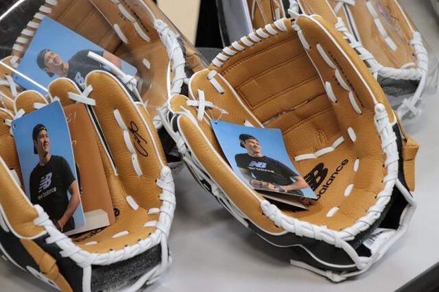 2023年12月25日、大谷翔平選手から全国の小学校に贈られたグローブがあわら市に届き、市役所にて、各小学校への受け渡し式を行いました。冬休み明けに、各学校で全児童にお披露目されました。