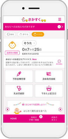 大阪府堺市に採用された『親子さかすくナビ』は、スマートフォン・タブレット端末・PCに対応したサービスで、妊産婦と子どもの健康データの記録・管理や予防接種のスケジュール管理、保育施設の条件検索、病児保育施設の空き状況確認、出産・育児に関するアドバイスの提供、離れた地域に住む祖父母など家族との共有機能や、市が配信する地域の情報をお知らせするなど、育児や仕事に忙しい母親や父親を助けてくれる便利な機能が充実しています。