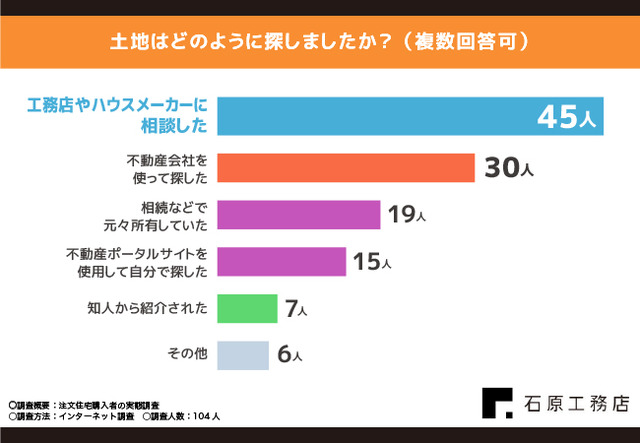 土地探しの方法:「工務店・ハウスメーカーへの相談」が最多