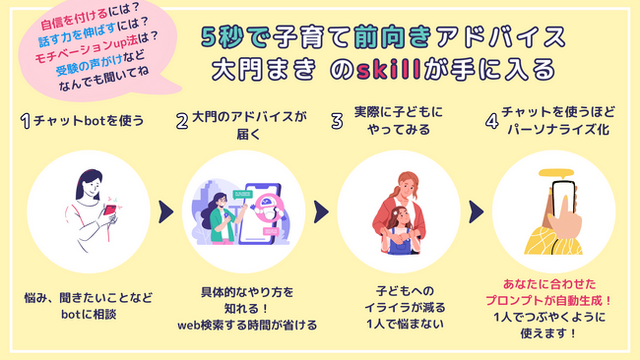 親子関係の改善や、家族全体の幸せにつながる一歩として、このチャットボットを活用していただければと思います。日々のストレスが軽減されることで、お子さんにも良い影響が出ます。