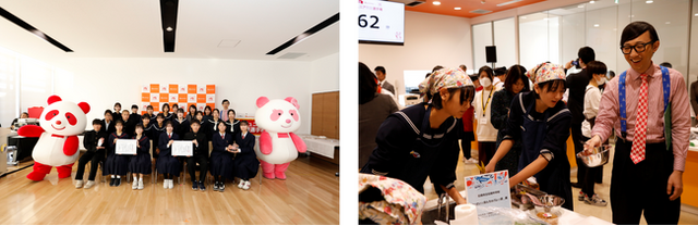 審査の結果、団体部門中学生の部では宮郷中学校 家庭科部(群馬県・伊勢崎市立宮郷中学校)「おじいちゃんの宝箱弁当」、高校生の部では紅一点(青森県・青森県立三本木高等学校)「Chargingサンド」がグランプリを受賞しました。個人部門の中学生の部では藤浦 小花さん(宮城県・仙台市立山田中学校)「大好きな祖母のために『安らぎ餃子』~ヘルシーで健康的!~」、高校生の部では津野 可奈己さん(愛知県・椙山女学園高等学校)「一つ食べれば元気モリモリ白玉饅頭!」がグランプリに輝きました。また、今回のコンテストでは特別審査員にお笑い芸人のこがけんさん、料理家の長谷川あかりさんをお招きし、子どもたちが作った料理について審査・講評していただきました。