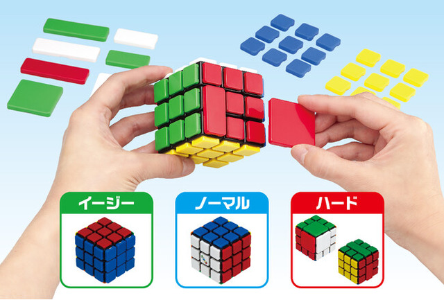 通常のルービックキューブ同様の遊びに加え、本体表面にカラーパネルをつける事により難易度を変え、新たな立体パズルとして楽しむことができる新感覚パズルです。カラーパネルは、大型・中型2種・小型タイプの計27枚が付属しています。