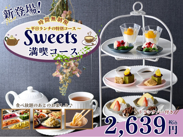この度、2024年12月5日(木)より、平日ランチ限定にて、和洋中のごちそうとともにスイーツプレートが楽しめる!とってもお得な『スイーツ満喫コース』が新登場!