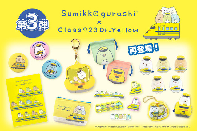 オリジナルグッズの商品企画・製造・販売を行う株式会社 立誠社(本社:大阪市淀川区・代表取締役社長:藤本勝己)が、2025年1月の923形ドクターイエロー(T4編成)の引退を受けて2024年12月6日より、すみっコぐらしとドクターイエローのコラボグッズ第3弾の新商品の発売と、第1弾・第2弾の人気商品の再販が決定した。