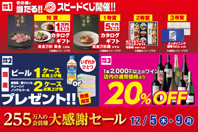 いつもご愛顧いただきありがとうございます。34年にわたって、支えてくださった会員様に感謝の気持ちを込め、リカーマウンテン各店では『255万人の会員様 大感謝セール』を開催!様々な感謝企画をご用意いたしました。