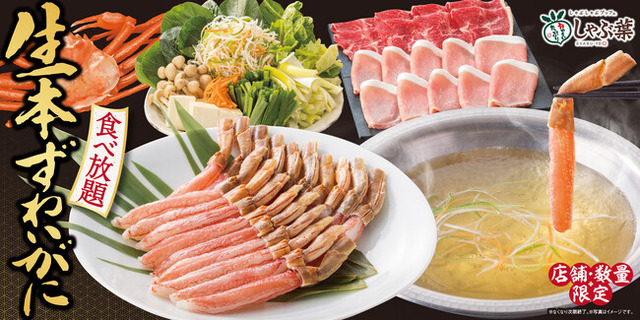 株式会社すかいらーくレストランツ(本社・東京都武蔵野市、代表取締役社長 中島 尚志)が運営する「しゃぶ葉」 では、2024年12月9日(月)より店舗限定・数量限定で「生本ずわい蟹」、2024年12月26日(木)より数量限定で「黒毛和牛」の食べ放題を販売いたします。