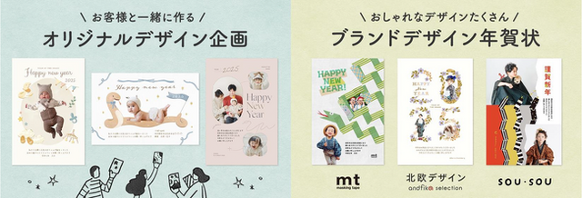 “ねんね期のお子様の写真でつくる年賀状”“ハイハイ期のお子様の写真でつくる年賀状”“少し成長したお子様や、ご夫婦の写真でつくる年賀状” という3つの切り口で、ママたちが今、おしゃれだと感じているテイストを組み合わせてデザインを作り上げています。おしゃれでかわいい、というだけでなく、写真の入れやすさ、デザインとしての使いやすさを、実際に年賀状作りを行うお客様の目線に立って作った3つのデザイン。ぜひ一度「スマホで写真年賀状」でチェックしてみてください。