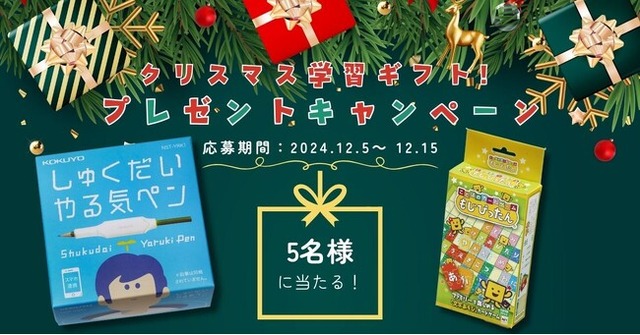 今回のSNSキャンペーンでは、応募された方の中から抽選で5名様に「しゅくだいやる気ペン」と「ことばのカードゲーム もじぴったん」をセットでプレゼントします。クリスマスに、親子で楽しみながら学ぶきっかけづくりをサポートします。