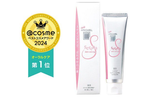 株式会社サンギ(本社:東京都中央区築地、代表取締役社長:ロズリン・ヘイマン)が展開する、美白高機能歯みがき売上No.1*1シリーズ「アパガード」のステインケアタイプ「アパガードセレナ」が、2023年春の発売から累計出荷本数100万本*を突破しました。そしてこの度、「@cosme ベストコスメアワード2024 ベストオーラルケア2年連続 第1位」、「LIPSベストコスメ2024 下半期こだわりアワード オーラルケア部門着色ケア賞1位」を獲得し、ベストコスメを2冠受賞しています。