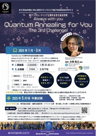 東北大学は 量子コンピューティングによるソリューション創出に向けた公開伴走型生配信授業(QX4Uシリーズ5回目)となるQA4U3を2025年1月より実施します。