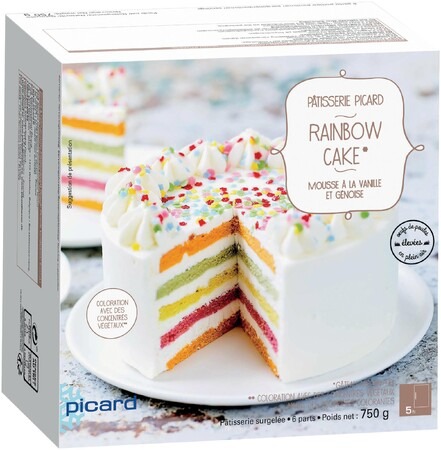 ■レインボーケーキ(直径約15cm、約5~6人分)植物由来の色素を使ったスポンジケーキを、ホワイトチョコレートとクリーム、クレームパティシエール(カスタードクリーム)をミックスしたホワイトチョコクリームで包みました。砂糖で作った星を飾ったケーキです。ホールケーキをカットした瞬間、中から色鮮やかな美しさが広がります。ひと切れごとに楽しめるカラフルな層が、特別なひとときを演出してくれます。
