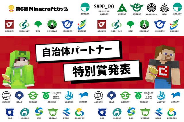 今年度は24自治体が「第6回Minecraftカップ」大会パートナーとして参画いただき、自治体パートナー特別賞が決まりました。