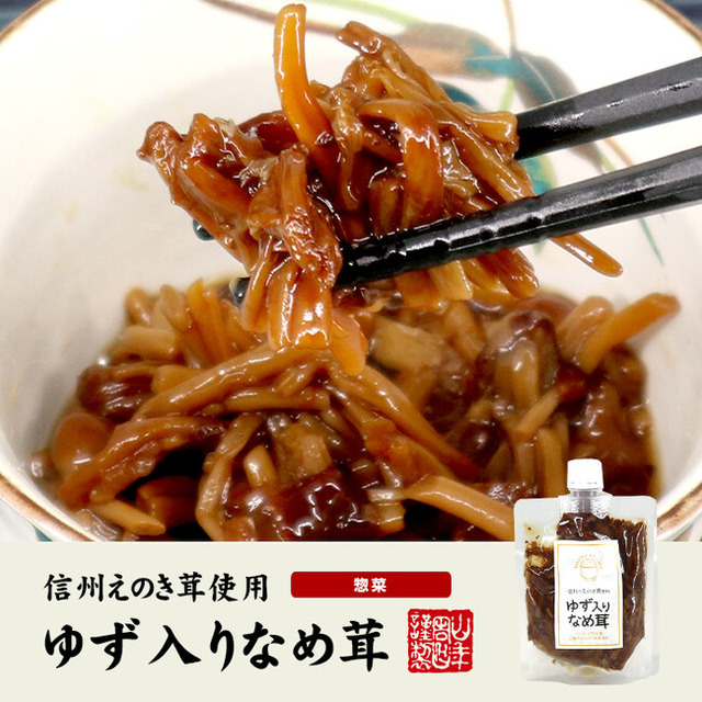 長野県産のえのき茸とゆずを使用した「ゆず入りなめ茸」です。