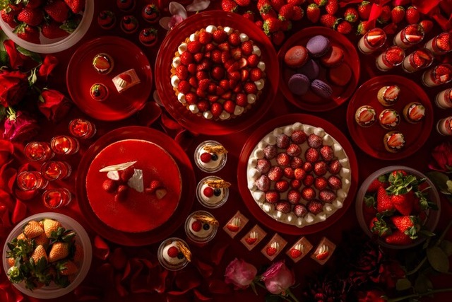昨年好評をいただいた苺をテーマにしたデザートブッフェを今年も開催。フレッシュな苺を使用したスイーツを多数ご用意いたします。しっとり焼き上げたスポンジにたっぷりの生クリームと苺をサンドした“ショートケーキ”、濃厚なカスタードクリームと甘酸っぱい苺が絶妙な“フレジエ”、ローズの香るジュレの中で美しく苺が浮かぶ“ストロベリージュレとローズジュレ”など、苺の魅力満載のラインナップ。苺好きに至福の時間をお届けします。