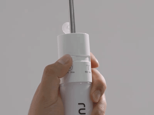 電源やバッテリーがないと水圧が弱くて、ちゃんと洗浄できないんでは?と思うかもしれませんが、心配はありません!水を補填するときに圧力をかけるので、水の勢いが強くしっかりと洗浄することができます。1回の補填で約30秒ほど水が出続けます。