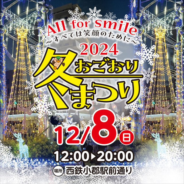 小郡の冬の風物詩、イルミネーションが今年も始まります。より華やかにパワーアップしたイルミネーションが、西鉄小郡駅前をにぎやかに彩ります。「おごおり冬まつり」もパワーアップして今年も同時開催されます。