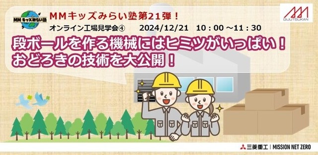 三菱みなとみらい技術館では、「MMキッズみらい塾第21弾! 段ボールを作る機械にはヒミツがいっぱい! おどろきの技術を大公開!」を12月21日(土)に開催します。