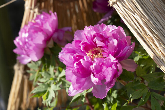 冬の厳しい環境から保護する為、開苑中の冬咲きぼたんは“わらぼっち”に包まれています。