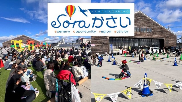soraかさいは加西市にある体験型ミュージアムで人気の観光地で、平和学習施設として活用されています。施設面積約100ヘクタールの巨大な施設は、その大部分が有効活用されておらず、今回のイベントはその遊休エリアを来場者に開放し、有効活用していく施策の第1弾として開催されました。今後も継続的に同様のイベントに協力し、soraかさいとともに同施設の活性化に取り組んでいきます。