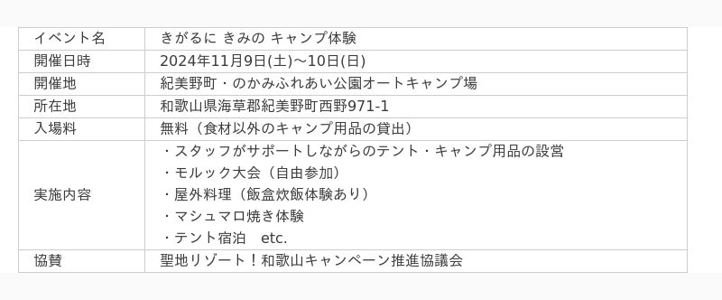 ■開催の目的は「キャンプの魅力も、和歌山県・紀美野町の魅力も、もっと知ってほしい!」