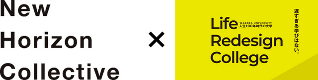 「プロと企画する!超実践ワークショップ」は早稲田大学と協業して、ニューホライズンコレクティブ合同会社が運営させていただきます。私達は人生100年時代、個人が社会に対して発揮する価値を最大化する個人・企業・社会の新しい関係、オープンコミュニティを形成することを目指し、Life Shift Platform(LSP)を展開しています。ミドル・シニア世代に対して、「学び」と「仲間」を提供し、共にあたらしい「出番」を創造しています。今回協力していく、早稲田大学様のLife Redesign College - 人生100年時代の大学 -も同様の理念を持って設立された、プレシニア・シニアが経験するライフステージの変化に合わせた講座ということから、大事な仲間との学び、コミュニティの促進、学びの継続などNHと共通する点も多く今回講義を担当させていただくに至りました。NHメンバーが講師として登壇する「プロと企画する!超実践ワークショップ」を通じて、プレシニア・シニアたちにより豊かな学びと、今後のライフステージを考えていく種を提供します。