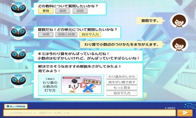 子どもたちにとって、何がわからないのかを言語化するのは実はとても難しく、「わからないことがわからない」「どう質問したらいいか、わからない」というケースも多々あります。これまでの指導ノウハウを活かし、わからないことの原因を予測し、単語レベルのつぶやきでも、AIとの会話によって、わからないことを掘り下げていき、適切な解説にたどり着くサポートをします。