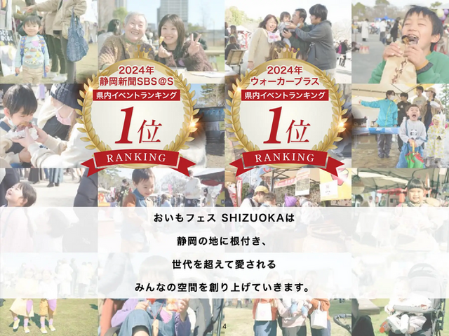 昨年のイベントでは、@エス 静岡新聞 SBSの県内イベントランキングとウォーカープラス 県内イベントランキングで1位を獲得し、静岡の皆様から高い評価をいただきました。今年も全国の焼き芋&おいもスイーツの名店と静岡の魅力が大集結!家族で楽しめるコンテンツが盛りだくさんのイベントとなっています。