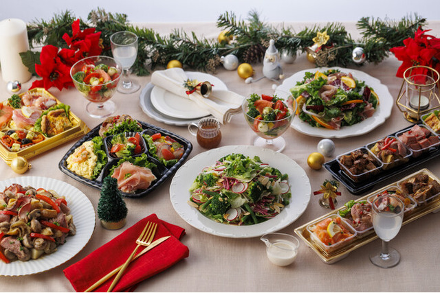 12月に入り、いよいよ目前に迫ったクリスマスに向け、今年は人気の定番オードブルをはじめ、赤と緑の色合いがクリスマスらしい『3種トマトとモッツァレラチーズのジェノバサラダ』、ローストビーフにケンコーマヨネーズ商品の『ノンオイル 薫るトリュフ~コク旨しょうゆ仕立て~』を合わせたサラダなど、全14アイテムを販売します。また、11月27日(水)より期間限定で販売している紅芯大根やブロッコリーなど旬の野菜を使った『旬まるごと!紅芯大根と花野菜の冬サラダ』も、華やかな色合いで前菜にぴったり。予約をしていただくと、確実に商品をお取り置きでき、スムーズにお受け取りいただけます。予約なしでも店舗で販売がございましたらご購入可能です。この時期にしか食べられない、とっておきのクリスマスメニューをご用意してお待ちしております。