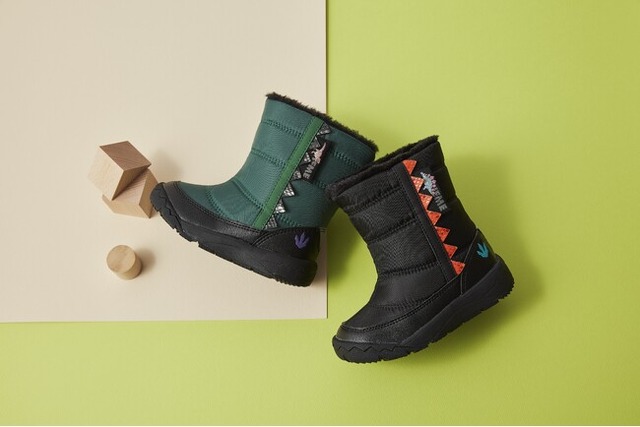 さらに、今年からキッズサイズ(15.0~19.0cm)と一部のベビーサイズ(12.0~15.0cm)のアウトソールが大幅リニューアル。新たに開発した複合型ソールは、ゴム素材と軽量素材を組み合わせることで、防滑性能を保ちながらブーツ特有の“重さ”を改善し、より軽量でお子様でも扱いやすい仕様に仕上げました。屈曲性も高まり、疲れにくく歩きやすいアイテムへとパワーアップ。冬のお出かけにおすすめの一足です。