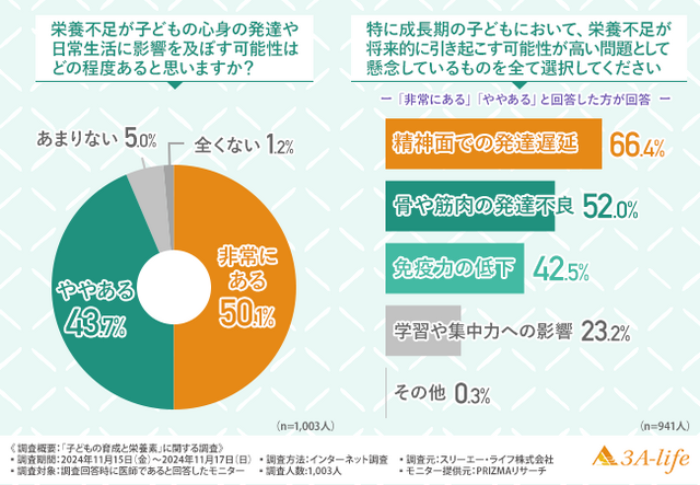 今回の調査で、栄養不足が子どもの心身の発達や日常生活に影響を及ぼす可能性があると考える医師が非常に多いことが明らかになりました。