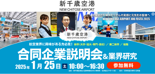 総合人材情報サービスの株式会社アイデム(東京都新宿区 代表取締役社長:椛山亮)は、北海道エアポート株式会社(北海道千歳市 代表取締役社長:蒲生 猛)が2025年1月25日に開催する合同企業説明会&業界研究の運営をサポートいたします。
