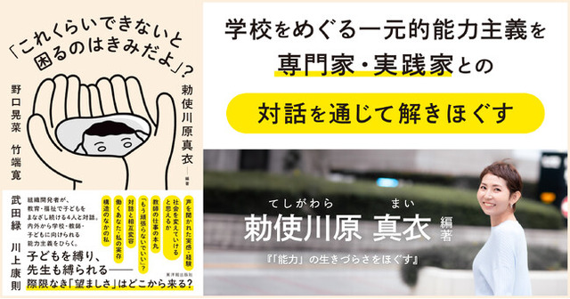 著書『「能力」の生きづらさをほぐす』(どく社)で一元的な「能力」観の危うさを指摘し、関心と共感を集める組織開発者・勅使川原真衣さんを編著者に迎え、教育・福祉の最前線で活躍する専門家・実践家4名との対話を収録します。