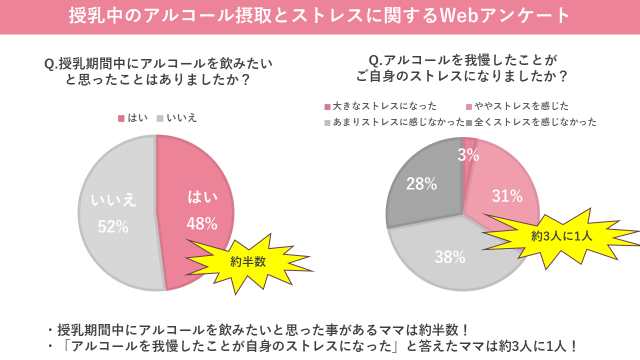 ・授乳中にアルコールを飲みたいと感じたことがある:48%