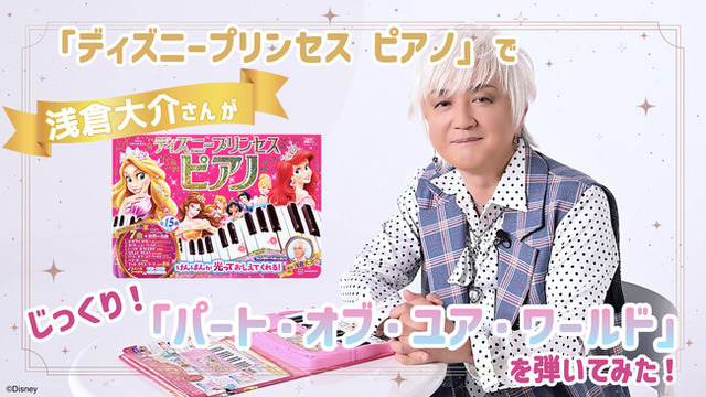『ディズニープリンセス ピアノ けんばんが 光って おしえて くれる! 監修/浅倉大介』の発売を公表した際のリリースでは、浅倉さんが『アラジン』 の主題歌「ホール・ニュー・ワールド」を弾く動画や、ディズニー音楽の魅力を紹介する動画を10月30日までの期間限定で公開しました。