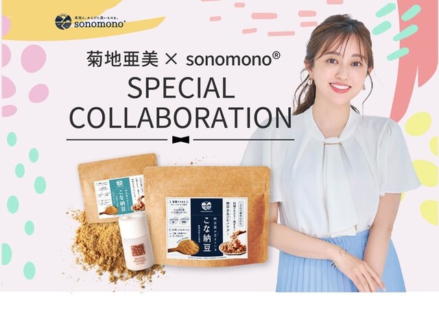 日本が誇るスーパーフード「納豆」の有用成分を余すところなく丸ごと活かした「こな納豆」をはじめとする『そのもの納豆菌シリーズ』を企画開発・販売するそのもの株式会社(sonomono、福岡県福岡市、代表:日高絵美)は、タレントの菊地亜美さんとのスペシャルコラボキャンペーンを開始しました。今回のコラボレーションは、約4年前より、菊地亜美さんのYouTubeやSNSにて『こな納豆』をご紹介いただいていたご縁で実現しました。