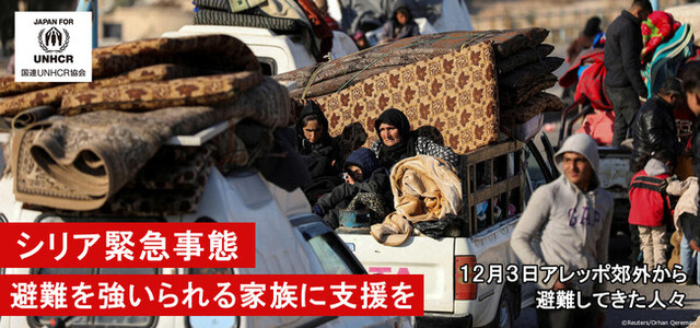 特定非営利活動法人 国連UNHCR協会(東京都港区)は、UNHCR(ユーエヌエイチシーアール:国連難民高等弁務官事務所)の日本における公式支援窓口として、11月27日より発生している「シリア緊急事態」への支援の呼びかけを開始しています。命を守る救援活動のため、日本社会からの一層の支援が急務です。