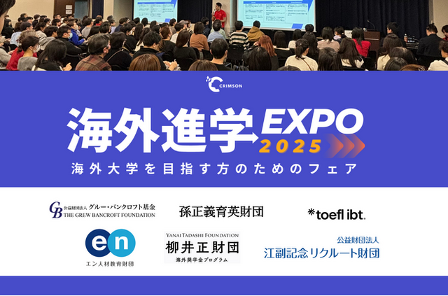 2025年1月12日(日)、日本橋にて「海外進学EXPO 2025」が開催されます。海外進学を目指す生徒や保護者の皆様に向けたこのイベントでは、海外大学の最新出願戦略や奨学金対策、語学試験のポイント、課外活動の作り方まで、進学に必要な情報を一日でカバーいたします。