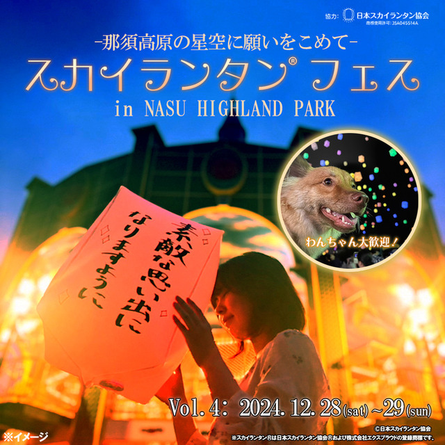 藤和那須リゾート株式会社(栃木県那須町/代表取締役社長:岩本 大二郎)が運営する“那須ハイランドパーク”では、2024年12月28日(土) 、12月29日(日)に、毎回大盛況の「スカイランタン(R)フェス」の再開催が決定しました。標高約550mにある那須ハイランドパークの夜空が、みなさんの願いを込めたスカイランタン(R)で煌めきます。現在、各日200個を前売り販売中!当日販売は無くなり次第終了です。確実に購入したい方は事前にWEBチケットよりご購入ください。