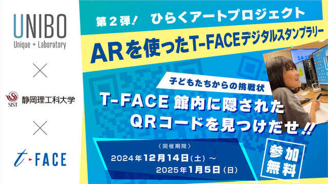 一般社団法人日本福祉協議機構(本社:愛知県名古屋市天白区井の森町)が運営する、デジタルアミューズメントフィールド【UNIBO】(https://unique-lab.jp/)は、静岡理工科大学先端アート研究室と協力し、2024年12月14日(土)~2025年1月5日(日)まで、T-FACE館内にてARを使ったデジタルスタンプラリーイベントを開催しています。
