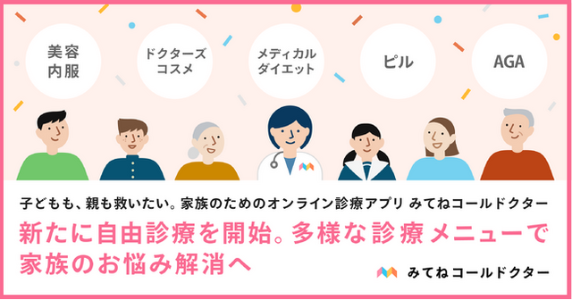 家族のためのオンライン診療アプリ「みてねコールドクター」を提供する株式会社コールドクター(東京都渋谷区、代表取締役社長:合田武広、以下コールドクター)は、新たに自由診療サービスを開始いたします。美容内服薬、ピル、AGAなどの診療科目を増やし、子育て世代を中心に多忙な生活を送る皆様に「家にいながら簡単にアクセスできる医療」を提供し、日常生活の中で健康や様々なお悩みを解消する新たな選択肢を提供します。