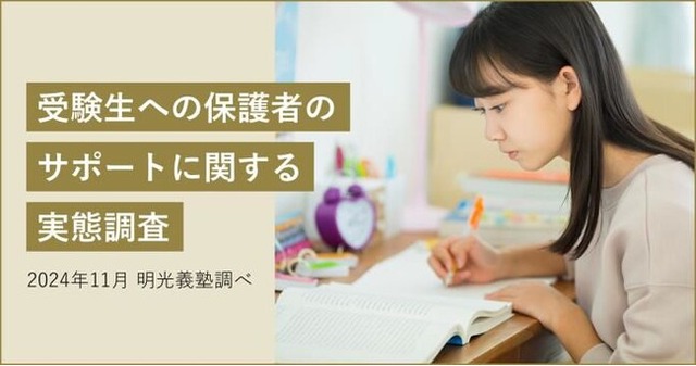個別指導の学習塾「明光義塾」を全国展開する株式会社明光ネットワークジャパン(本社:東京都新宿区、代表取締役社長:岡本光太郎)は、受験を控える中学3年生のお子さまを持つ保護者820名を対象に、「受験生への保護者のサポートに関する実態調査」を実施しました。