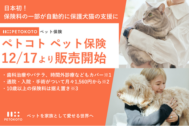 「ペットを家族として愛せる世界へ」をミッションに掲げペットウェルビーングブランドを展開する株式会社PETOKOTO(代表取締役社長 大久保泰介、以下「ペトコト」)は、ペット保険「ペトコト ペット保険」(https://www.petfamilyins.co.jp/agent/petokoto01e/)を2024年12月17