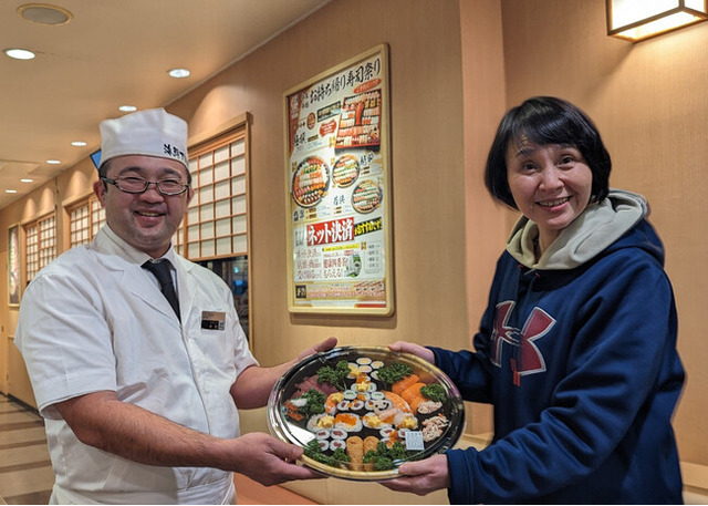 写真は昨年2023年12月の様子。クリスマスツリーを模したお寿司を福井県内のこども食堂の皆様に無料でご提供しました。
