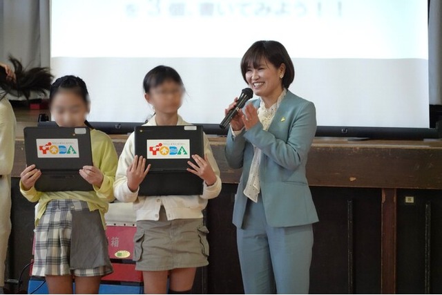 授業では、自分の強み、自分の弱みを書き出し、弱みに関しては、強みに言い換えるワークを実施。子どもたちは積極的に自分の考えを共有していました。また、目的と目標の違いについて説明。目標から夢を考えるのではなく、どんな人になりたいかという目的から夢を考えることをアドバイスしました。最後に、「自分らしさや夢が見つからなくても、自分を好きだったら、次の夢を目指せるし、自分らしさを活かしていける」と子どもたちにメッセージを送りました。